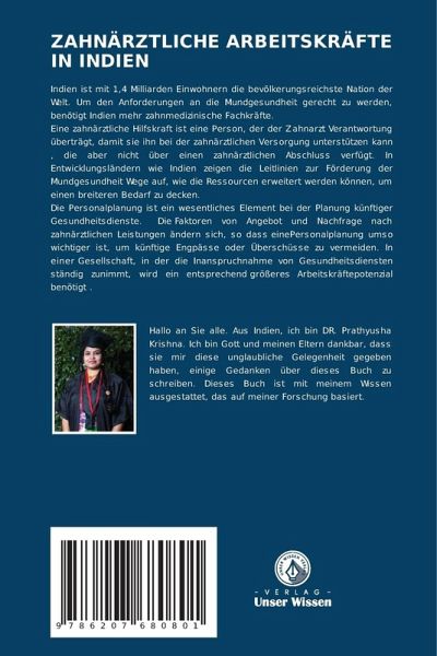 Indien ist mit 1,4 Milliarden Einwohnern die bevölkerungsreichste Nation der Welt. Um den Anforderungen an die Mundgesundheit gerecht zu werden, benötigt Indien mehr zahnmedizinische Fachkräfte.Eine zahnärztliche Hilfskraft ist eine Person, der der Zahnarzt Verantwortung überträgt, damit sie ihn bei der zahnärztlichen Versorgung unterstützen kann , die aber nicht über einen zahnärztlichen Abschluss verfügt. In Entwicklungsländern wie Indien zeigen die Leitlinien zur Förderung der Mundgesundheit Wege auf, wie die Ressourcen erweitert werden können, um einen breiteren Bedarf zu decken.Die Personalplanung ist ein wesentliches Element bei der Planung künftiger Gesundheitsdienste. Die Faktoren von Angebot und Nachfrage nach zahnärztlichen Leistungen ändern sich, so dass einePersonalplanung umso wichtiger ist, um künftige Engpässe oder Überschüsse zu vermeiden. In einer Gesellschaft, in der die Inanspruchnahme von Gesundheitsdiensten ständig zunimmt, wird ein entsprechend größeres Arbeitskräftepotenzial benötigt .