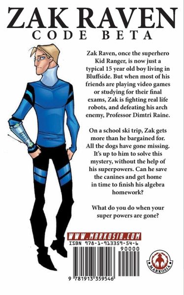 Zak Raven, once the superhero Kid Ranger, is now just a typical 15-year-old boy living in Bluffside. But when most of his friends are playing video games or studying for their final exams, Zak is fighting real life robots, and defeating his arch enemy, Professor Dimitri Raine. On a school ski trip, Zak gets more than he bargained for. All the dogs have gone missing. It’s up to him to solve this mystery, without the help of his superpowers. Can he save the canines and get home in time to finish his algebra homework? What do you do when your superpowers are gone?