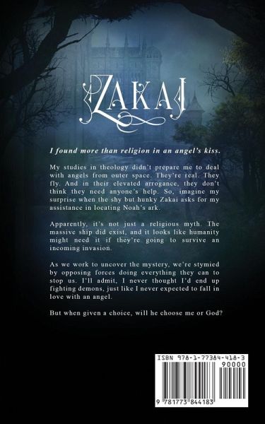 I found more than religion in an angel's kiss. My studies in theology didn't prepare me to deal with angels from outer space. They're real. They fly. And in their elevated arrogance, they don't think they need anyone's help. So, imagine my surprise when the shy but hunky Zakai asks for my assistance in locating Noah's ark. Apparently, it's not just a religious myth. The massive ship did exist, and it looks like humanity might need it if they're going to survive an incoming invasion. As we work to uncover the mystery, we're stymied by opposing forces doing everything they can to stop us. I'll admit, I never thought I'd end up fighting demons, just like I never expected to fall in love with an angel. But when given a choice, will he choose me or God?