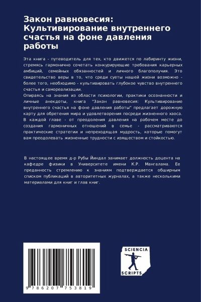 Jeta kniga - putewoditel' dlq teh, kto dwizhetsq po labirintu zhizni, stremqs' garmonichno sochetat' konkuriruüschie trebowaniq kar'ernyh ambicij, semejnyh obqzannostej i lichnogo blagopoluchiq. Jeto swidetel'stwo wery w to, chto sredi suety nashej zhizni wozmozhno - bolee togo, neobhodimo - kul'tiwirowat' glubokoe chuwstwo wnutrennego schast'q i samorealizacii.Opiraqs' na znaniq iz oblasti psihologii, praktiki osoznannosti i lichnye anekdoty, kniga "Zakon rawnowesiq: Kul'tiwirowanie wnutrennego schast'q na fone dawleniq raboty" predlagaet dorozhnuü kartu dlq obreteniq mira i udowletworeniq posredi zhiznennogo haosa. V kazhdoj glawe - ot preodoleniq dawleniq na rabochem meste do sozdaniq garmonichnyh otnoshenij w sem'e - rassmatriwaütsq prakticheskie strategii i neprehodqschaq mudrost', kotorye pomogut wam preodolewat' zhiznennye trudnosti s izqschestwom i stojkost'ü.
