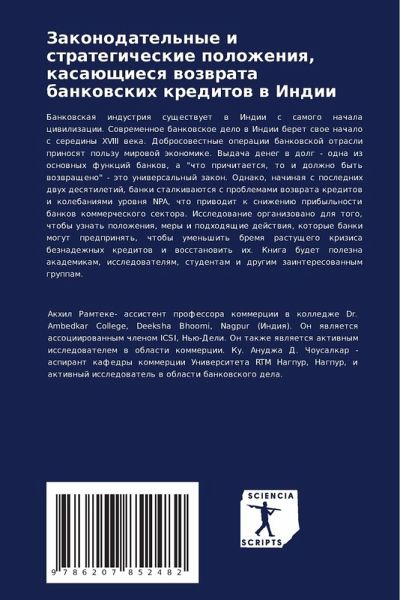 Bankowskaq industriq suschestwuet w Indii s samogo nachala ciwilizacii. Sowremennoe bankowskoe delo w Indii beret swoe nachalo s serediny XVIII weka. Dobrosowestnye operacii bankowskoj otrasli prinosqt pol'zu mirowoj äkonomike. Vydacha deneg w dolg - odna iz osnownyh funkcij bankow, a "chto prichitaetsq, to i dolzhno byt' wozwrascheno" - äto uniwersal'nyj zakon. Odnako, nachinaq s poslednih dwuh desqtiletij, banki stalkiwaütsq s problemami wozwrata kreditow i kolebaniqmi urownq NPA, chto priwodit k snizheniü pribyl'nosti bankow kommercheskogo sektora. Issledowanie organizowano dlq togo, chtoby uznat' polozheniq, mery i podhodqschie dejstwiq, kotorye banki mogut predprinqt', chtoby umen'shit' bremq rastuschego krizisa beznadezhnyh kreditow i wosstanowit' ih. Kniga budet polezna akademikam, issledowatelqm, studentam i drugim zainteresowannym gruppam.