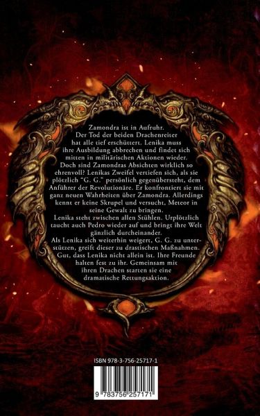 Zamondra ist in Aufruhr. Der Tod der beiden Drachenreiter hat alle tief erschüttert. Lenika muss ihre Ausbildung abbrechen und findet sich mitten in militärischen Aktionen wieder.Doch sind Zamondras Absichten wirklich so ehrenvoll? Lenikas Zweifel vertiefen sich, als sie plötzlich »G. G.« persönlich gegenübersteht, dem Anführer der Revolutionäre. Er konfrontiert sie mit ganz neuen Wahrheiten über Zamondra. Allerdings kennt er keine Skrupel und versucht, Meteor in seine Gewalt zu bringen.Lenika steht zwischen allen Stühlen. Urplötzlich taucht auch Pedro wieder auf und bringt ihre Welt gänzlich durcheinander.Als Lenika sich weiterhin weigert, G. G. zu unterstützen, greift dieser zu drastischen Maßnahmen. Gut, dass Lenika nicht allein ist. Ihre Freunde halten fest zu ihr. Gemeinsam mit ihren Drachen starten sie eine dramatische Rettungsaktion.