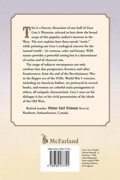 This is a literary discussion of one-half of Zane Grey's Westerns, selected to best show the broad scope of this popular author's interests in the West. The text explains how these novels "work," while pointing out Grey's ecological concern for the natural world--its vastness, color and beauty. Wild nature provides a powerful setting but is a determinant of action and of character too. The range of subjects encompasses not only cowboys but also prospectors, foresters and other frontiersmen, from the end of the Revolutionary War to the flapper era of the 1920s. World War I veterans, including an American Indian, are portrayed in several books, and women are colorful main protagonists in others, all uniquely characterized. Grey's sure ear for dialogue is key to his vivid presentation of the ideals of the Old West.