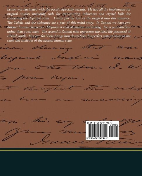 Lytton was fascinated with the occult especially wizards. He had all the implements for magical studies including rods for transmitting influences and crystal balls for contacting the departed souls. Lytton put his love of the magical into this romance. The Cabala and the alchemist are a part of this weird story. In Zanoni we have two distinct human characters. Mejnour is void of passion and feeling. He is pure intellect rather than a real man. The second is Zanoni who represents the ideal life possessed of eternal youth. His love for Viola brings him down from his perfect state in share in the cares and anxieties of the natural human state.