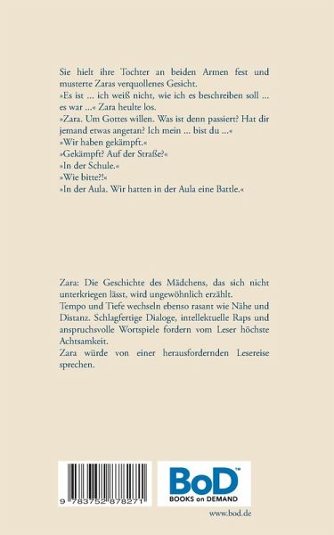 Heile Welt in einer Kleinstadt? Weit gefehlt!Ein Mädchen - viele Probleme. Die 17-jährige magersüchtige Zara stürzt als Neue am kleinstädtischen Gymnasium in einen Strudel von Mobbing, Erpressung, Freundschaft, Erwartungen, Enttäuschungen und Ängsten. Sie kämpft mit sich selbst, mit ihrer Mutter, ihren Lehrern und Mitschülern. Nur ihr toter Vater steht ihr bei. Und die Liebe?