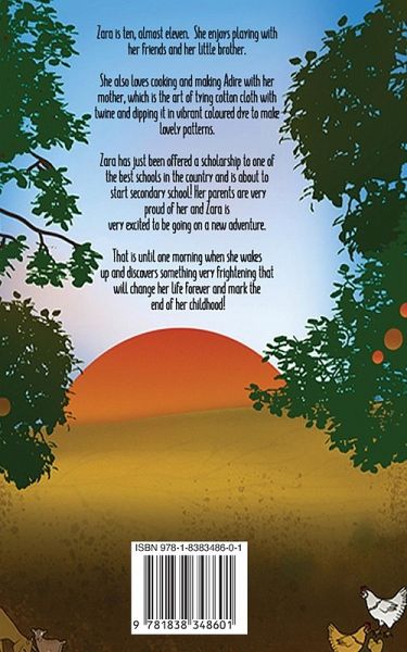 Zara is ten, almost eleven. She enjoys playing with her friends and her little brother. She also loves cooking and making Adire with her mother, which is the art of tying cotton cloth with twine and dipping it in vibrant coloured dye to make lovely patterns. Zara has just been offered a scholarship to one of the best schools in the country and is about to start secondary school! Her parents are very proud of her and Zara is very excited to be going on a new adventure. That is until one morning when she wakes up and discovers something very frightening that will change her life forever and marks the end of her childhood!
