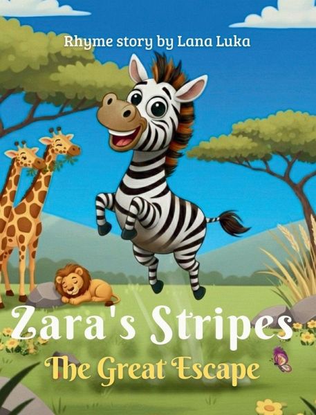 Title: Zara's Stripes: The Great Escape Author: Lana Luka Description: "Zara's Stripes: The Great Escape" follows the adventure of Zebra Zara, who wakes up one sunny morning to find that her beloved stripes have mysteriously disappeared. Determined to reclaim her unique look, Zara embarks on a whimsical journey, searching everywhere from under her bed to the garden, by the river, and through the fields. Target Audience: Children aged 3 to 7, perfect for parents, caregivers, and educators looking for a charming story to share with young readers.