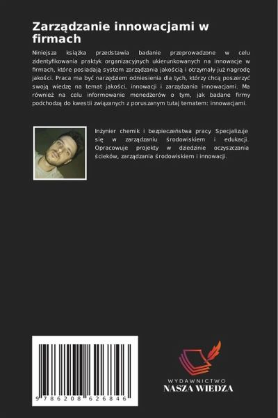 Niniejsza ksi¿¿ka przedstawia badanie przeprowadzone w celu zidentyfikowania praktyk organizacyjnych ukierunkowanych na innowacje w firmach, które posiadaj¿ system zarz¿dzania jako¿ci¿ i otrzymäy ju¿ nagrod¿ jako¿ci. Praca ma by¿ narz¿dziem odniesienia dla tych, którzy chc¿ poszerzy¿ swoj¿ wiedz¿ na temat jako¿ci, innowacji i zarz¿dzania innowacjami. Ma równie¿ na celu informowanie mened¿erów o tym, jak badane firmy podchodz¿ do kwestii zwi¿zanych z poruszanym tutaj tematem: innowacjami.