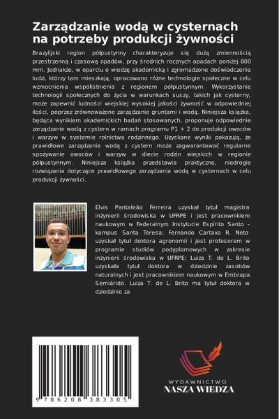 Brazylijski region pó¿pustynny charakteryzuje si¿ du¿¿ zmienno¿ci¿ przestrzenn¿ i czasow¿ opadów, przy ¿rednich rocznych opadach poni¿ej 800 mm. Jednak¿e, w oparciu o wiedz¿ akademick¿ i zgromadzone do¿wiadczenia ludzi, którzy tam mieszkaj¿, opracowano ró¿ne technologie spo¿eczne w celu wzmocnienia wspó¿istnienia z regionem pó¿pustynnym. Wykorzystanie technologii spo¿ecznych do ¿ycia w warunkach suszy, takich jak cysterny, mo¿e zapewni¿ ludno¿ci wiejskiej wysokiej jako¿ci ¿ywno¿¿ w odpowiedniej ilo¿ci, poprzez zrównowäone zarz¿dzanie gruntami i wod¿. Niniejsza ksi¿¿ka, b¿d¿ca wynikiem akademickich badä stosowanych, proponuje odpowiednie zarz¿dzanie wod¿ z cystern w ramach programu P1 + 2 do produkcji owoców i warzyw w systemie rolnictwa rodzinnego. Uzyskane wyniki pokazuj¿, ¿e prawid¿owe zarz¿dzanie wod¿ z cystern mo¿e zagwarantowä regularne spo¿ywanie owoców i warzyw w diecie rodzin wiejskich w regionie pó¿pustynnym. Niniejsza ksi¿¿ka przedstawia praktyczne, niedrogie rozwi¿zania dotycz¿ce prawid¿owego zarz¿dzania wod¿ w cysternach w celu produkcji ¿ywno¿ci.