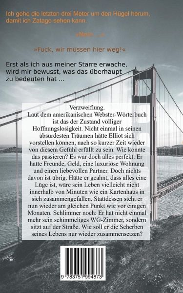 Verzweiflung.Laut dem amerikanischen Webster-Wörterbuch ist das der Zustand völliger Hoffnungslosigkeit. Nicht einmal in seinen absurdesten Träumen hätte Elliot sich vorstellen können, nach so kurzer Zeit wieder von diesem Gefühl erfüllt zu sein. Wie konnte das passieren? Es war doch alles perfekt. Er hatte Freunde, Geld, eine luxuriöse Wohnung und einen liebevollen Partner. Doch nichts davon ist übrig. Hätte er geahnt, dass alles eine Lüge ist, wäre sein Leben vielleicht nicht innerhalb von Minuten wie ein Kartenhaus in sich zusammengefallen. Stattdessen steht er nun wieder am gleichen Punkt wie vor einigen Monaten. Schlimmer noch: Er hat nicht einmal mehr sein schimmeliges WG-Zimmer, sondern sitzt auf der Straße. Wie soll er die Scherben seines Lebens nur wieder zusammensetzen?Zatago ist eine aufwühlende Mischung aus Drama, Erotik und Unterhaltung.Gay-Romance. Enthält homoerotische Szenen.Dies ist Teil 2 der Zatago-Reihe.