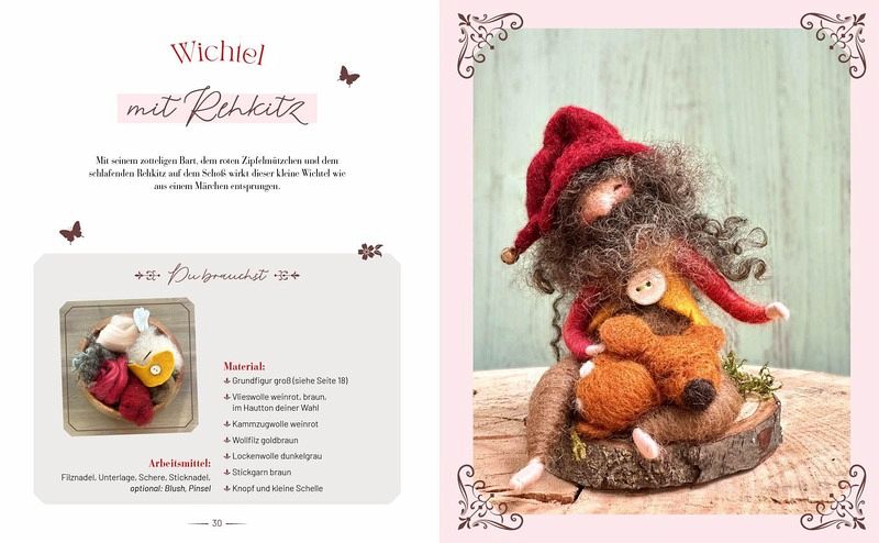Tauche ein in die Welt des Nadelfilzens und gestalte zauberhafte kleine Wesen aus Märchenwolle. Ob Wichtel, Elfen oder niedliche Waldtiere - mit diesem Buch lernst du Schritt für Schritt, wie du filigrane Figuren aus Wolle mit der Nadel filzen kannst. Dank einem Drahtgerüst lassen sich die Figuren nach Belieben formen und bewegen. Perfekt für alle, die sich kreativ ausprobieren oder ihr Können beim Filzen weiterentwickeln möchten.