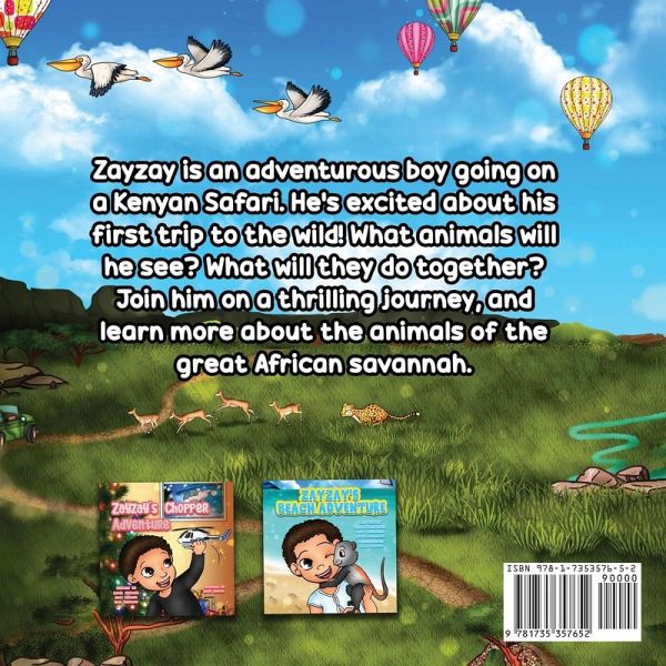 Zayzay is an adventurous boy going on a Kenyan Safari and he is excited about his first trip to the wild! What animals will he see on his trek? What will they do together? Join him on a thrilling journey, and learn more about the animals of the great African Savannah.