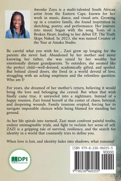ZAZI is a powerful and emotionally charged coming-of-age novel that delves into the complexities of abandonment, trauma, resilience, and self-discovery. From a young age, Zazi is forced to navigate a world that offers little comfort. Abandoned by her parents and left in the care of emotionally distant grandparents, she grows up questioning her worth and searching for the love she has never known. Despite the material security her grandparents provide, the absence of warmth and affection leaves an unfillable void in her heart. When her long-lost mother suddenly reappears, Zazi dares to hope for the family she has always dreamed of. But instead of the joyful reunion she imagined, she is thrown into a nightmare of betrayal, abuse, and shattered illusions. Her mother's choices drag her into an environment where violence and suffering become part of her daily existence. Enduring physical, emotional, and psychological wounds, Zazi's innocence is stolen, and she is left to fend for herself in a world that seems determined to break her. Yet, even in the darkest moments, Zazi refuses to surrender to despair. With an unyielding spirit, she embarks on a painful but necessary journey to reclaim her identity and redefine what love and family indeed mean. She struggles with anger, shame, and self-loathing, yet she also discovers unexpected strength, fleeting moments of kindness, and the possibility of hope. Told with raw honesty and deep emotional insight, ZAZI is more than a story of survival-it is a testament to the human will to heal, rise, and carve out a future beyond the pain of the past. This gripping and heartbreaking novel explores our scars and the resilience it takes to transform them into stepping stones toward self-acceptance and liberation. For readers who appreciate deeply moving narratives about adversity, courage, and triumph, ZAZI offers an unforgettable journey of breaking free from the chains of the past and embracing the power of self-discovery.