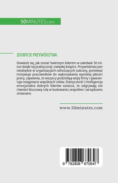 Dowiedz si¿, jak zostä ¿wietnym liderem w zaledwie 50 minut dzi¿ki tej praktycznej i zwi¿z¿ej ksi¿¿ce. Przywództwo jest niezb¿dne w organizacjach odnosz¿cych sukcesy, poniewä motywuje pracowników do wykonywania wysokiej jako¿ci pracy, zapewnia, ¿e wszyscy podzielaj¿ wizj¿ firmy i gwarantuje osi¿gni¿cie wspólnych celów. Elastyczno¿¿ i inteligencja emocjonalna dobrych liderów oznacza, ¿e odgrywaj¿ oni równie¿ kluczow¿ rol¿ w budowaniu zespo¿ów i zarz¿dzaniu zmianami. Z tej ksi¿¿ki dowiesz si¿, jak przywództwo mo¿e pomóc w zarz¿dzaniu wydajno¿ci¿ i prowadzeniu biznesu. Zawiera tak¿e przydatne wskazówki dotycz¿ce zdobywania zaufania zespo¿u i porady dotycz¿ce radzenia sobie z trudnymi osobowo¿ciami, dzi¿ki czemu b¿yskawicznie staniesz si¿ inspiruj¿cym liderem!
