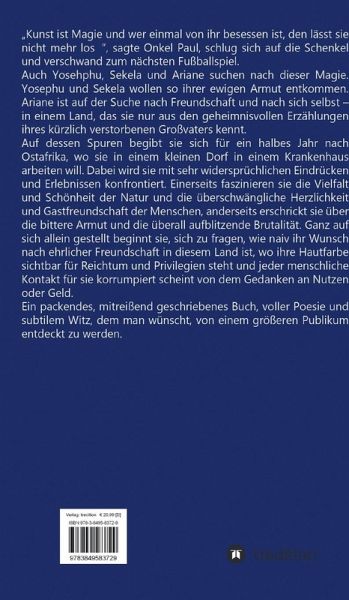 Auch Yosehphu, Sekela und Ariane suchen nach dieser Magie. Yosephu und Sekela wollen so ihrer ewigen Armut entkommen. Ariane ist auf der Suche nach Freundschaft und nach sich selbst in einem Land, das sie nur aus den geheimnisvollen Erzählungen ihres kürzlich verstorbenen Großvaters kennt.