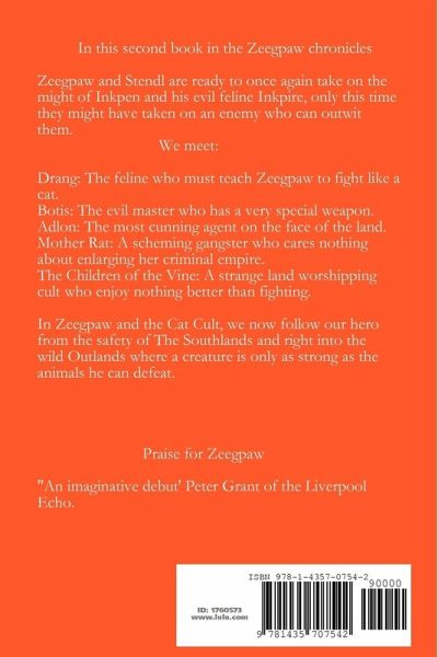 Zeegpaw, the dog with more luck than any animal on the face of the land is back! Once again, Inkpen, the evil feline is trying to kill him and works on a fiendish plot to send the lovable canine to the dangerous Outlands where he must battle Mother Rat, the gangster with a liking for all that is bad, and The Children of the Vine, a group of cats who specialise in Dumort, the ancient art of cat duelling.