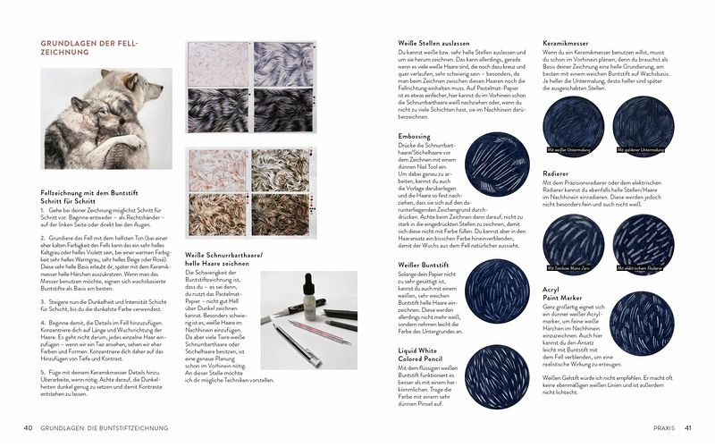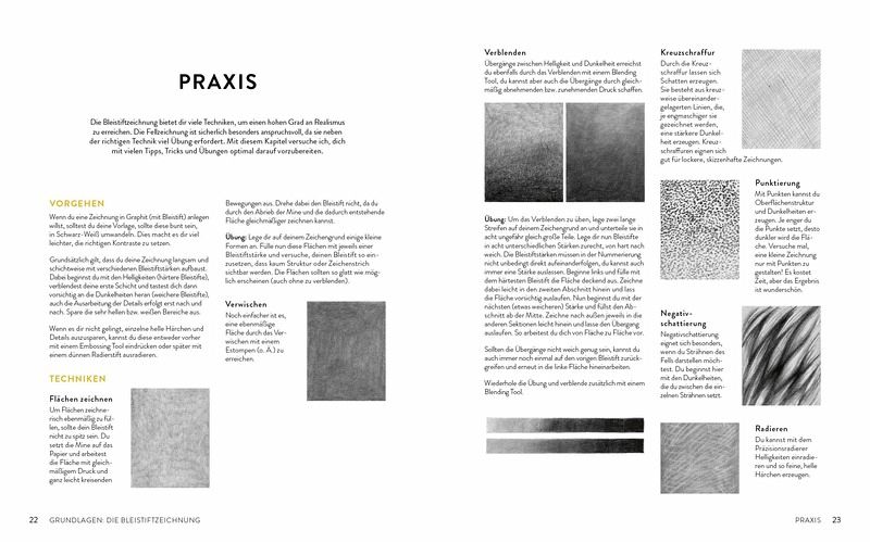 Ausgehend von den Basics wird praxisnah und umfänglich vermittelt, wie fotorealistische Zeichnungen gelingen. Mithilfe der umfassenden Step-Anleitungen können beeindruckende Tierporträts selber auf Papier gebracht werden. Mit extra Übungen zum Zeichnen von Details wie Augen und Fell wird der eigene Prozess gefördert. Ob Hundeliebhaber oder Cat lady - vielerlei Tiere dieser Welt werden von Susanne Boehmer-Hoops umfassend vorgestellt und das eigene Lieblingstier kann mit ihren Tipps und Tricks bald selbst gezeichnet werden.