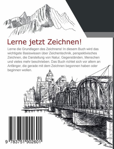Lerne die Grundlagen des Zeichnens! Dieses Buch vermittelt das wichtigste Basiswissen über Zeichentechnik, zeichnerische Mittel, Darstellungsmethoden und Zeichenstile. Doch damit nicht genug! Denn du erfährst hier noch mehr über spezielle Themen wie das Zeichnen von Stillleben, Landschaften, perspektivisches Zeichnen und das Zeichnen von Menschen.Das Buch richtet sich vor allem an Anfänger, die gerade mit dem Zeichnen begonnen haben oder beginnen wollen. Doch auch fortgeschrittene Zeichner werden in dieser Lektüre fündig, da hier auch tiefergehendes Wissen rund um die zeichnerische Darstellung von Motiven vermittelt wird.