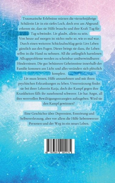 Traumatische Erlebnisse stürzen die vierzehnjährige Schülerin Liv in ein tiefes Loch, doch erst am Abgrund erkennt sie, dass sie Hilfe braucht und ihre Kraft Tag für Tag schwindet. Liv glaubt, allein zu sein.Von heute auf morgen ist nichts mehr so, wie es mal war. Durch einen weiteren Schicksalsschlag gerät Livs Leben gänzlich aus den Fugen. Dieser bringt sie dazu, ihr Leben selbst in die Hand zu nehmen. All die anfänglich harmlosen Alltagsprobleme werden zu scheinbar unüberwindbaren Hindernissen. Die gut behüteten Geheimnisse innerhalb der Familie kommen ans Licht und alles verändert sich plötzlich komplett. Liv muss lernen, Hilfe anzunehmen und mit ihren psychischen Erkrankungen zu leben. Unterstützung findet sie bei ihrer Lehrerin Katja, doch der Kampf gegen ihre Krankheiten fällt ihr zunehmend schwerer. Liv hat Angst, all ihre wertvollen Bewältigungsstrategien aufzugeben. Wird sie den Kampf gewinnen? Eine Geschichte über Depression, Essstörung und Selbstverletzung, aber vor allem die Hilfe liebenswerter Personen und der Weg in ein neues Leben.