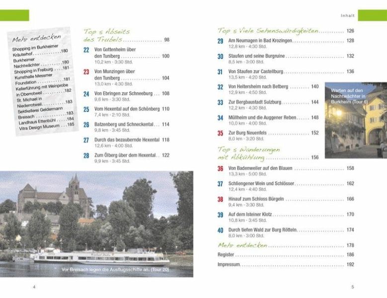 40 ausgewählte und aussichtsreiche Touren für jeden Anspruch. 5 x 5-Top-Touren führen Sie zu den stillsten Wegen, tollsten Aussichten und leckersten Hütten. GPS-Tracks zu allen Touren zum Download und die Faltkarte zum Herausnehmen erleichtern die Planung und die Orientierung auf der Tour. Mit vielen Tipps für Pfade abseits des Trubels, gemütlichen Einkehr- und erfrischende Bademöglichkeiten.In Deutschlands wärmster Gegend, an der badischen Weinstraße, erhebt sich der Kaiserstuhl aus dem Oberrheintal. Rebberge, dichte Wälder, Obstgärten und die Rheinauen laden zu erholsamen Ausflügen ein. 40 Entdecker-Touren vom Panoramaweg über genussreiche Weinwanderwege bis zu spannenden Themenrouten versammelt dieser Wanderführer. Zeit zum Wandern am sonnigen Kaiserstuhl und im lieblichen Markgräflerland.