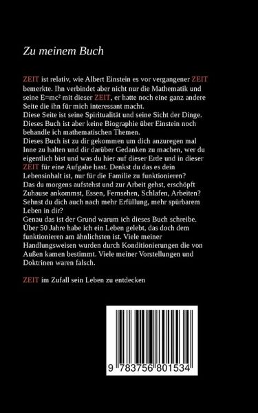 Zeit ist relativ wie Albert Einstein es vor vergangener Zeit bemerkte. Ihn verbindet aber nicht nur die Mathematik und seine E=mc² mit dieser Zeit, er hatte noch eine ganz andere Seite die ihn für mich interessant macht. Diese Seite ist seine Spiritualität und seine Sicht der Dinge. Dieses Buch ist aber keine Biographie über Einstein noch behandle ich mathematischen Themen. Dieses Buch ist zu dir gekommen um dich anzuregen mal Inne zu halten und dir Gedanken zu machen, wer du eigentlich bist und was du hier auf dieser Erde und in dieser Zeit für eine Aufgabe hast. Denkst du, dass es dein Lebensinhalt ist, nur für die Familie zu funktionieren? Das du morgens aufstehst und zur Arbeit gehst, erschöpft Zuhause ankommst, Essen, Fernsehen, Schlafen, Arbeiten?Sehnst du dich auch nach mehr Erfüllung mehr spürbarem Leben in dir? Genau das ist der Grund warum ich dieses Buch geschrieben habe. Über 50 Jahre lang, habe ich ein Leben gelebt, das doch dem funktionieren am ähnlichsten ist. Viele meiner Handlungsweisen wurden durch Konditionierungen die von Außen kamen bestimmt. Viele meiner Vorstellungen und Doktrinen waren falsch.