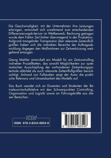Die Geschwindigkeit, mit der Unternehmen ihre Leistungen erbringen, entwickelt sich zunehmend zum entscheidenden Differenzierungskriterium im Wettbewerb. Rechnung getragen wurde dem Faktor Zeit bisher überwiegend in der Produktion. Aufgrund mangelnder Transparenz über relevante Zeiteinflußgrößen haben sich die indirekten Bereiche der Auftragsabwicklung dagegen den Maßnahmen zur Zeitverkürzung weitgehend entzogen. Georg Miehler entwickelt ein Modell für ein Zeitcontrolling indirekter Prozeßketten, das sowohl Möglichkeiten zur systematischen Ausschöpfung der vorhandenen Zeitsenkungspotentiale abbildet als auch relevante Zeiteinflußgrößen berücksichtigt. Anhand von Fallstudien zeigt der Autor die praktische Relevanz und Umsetzbarkeit des Modells auf.