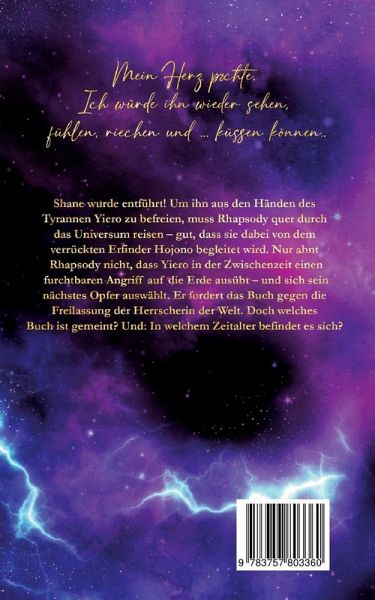 »Mein Herz pochte. Ich würde ihn wieder sehen, fühlen, riechen und ... küssen können.«Shane wurde entführt! Um ihn aus den Händen des Tyrannen Yiero zu befreien, muss Rhapsody quer durch das Universum reisen - gut, dass sie dabei von dem verrückten Erfinder Hojono begleitet wird. Nur ahnt Rhapsody nicht, dass Yiero in der Zwischenzeit einen furchtbaren Angriff auf die Erde ausübt - und sich sein nächstes Opfer auswählt. Er fordert das Buch gegen die Freilassung der Herrscherin der Welt. Doch welches Buch ist gemeint? Und: In welchem Zeitalter befindet es sich? Die fesselnde Fortsetzung der gefühlvollen Zeitreise-Trilogie - perfekt für Young Adult & Romantasy-Fans!