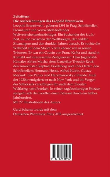 Geboren 1891 in Prag, Schriftsteller, Freimaurer und verzweifelt-hoffender Weltverstehenssehnsüchtiger. Ein Suchender der k.u.k.-Zeit, in und zwischen den Weltkriegen, den wilden Zwanzigern und den dunklen Jahren danach. Er suchte die Wahrheit auf dem Monte Verità ebenso wie in seinen Träumen. Er war ein Cousin von Franz Kafka und stand in Kontakt mit interessanten Zeitgenossen: Dem Jugendstil-Künstler Alfons Mucha, dem Esoteriker Theodor Reuß, den Anarchisten Raphael Friedeberg und Fritz Oerter, den Schriftstellern Hermann Hesse, Alfred Kubin, Gustav Meyrink, Leo Perutz und Herzmanovsky-Orlando. Ende der 1930er emigrierte er nach New York und die Wogen des Schicksals verschlugen ihn nach dem Zweiten Weltkrieg nach Franken. In seinen tagebuchartigen Skizzen spiegeln sich die Facetten einer Odyssee durch ein halbes Jahrhundert.Mit Illustrationen des Autors.