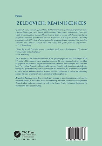 Ya. B. Zeldovich was certainly one of the greatest physicists and cosmologists of the 20th century. This volume presents reminiscences of this exemplary academician, providing biographical and historical insights from colleagues who knew him best. Zeldovich's achievements are outlined, including those in relativistic astrophysics and cosmology, the theory of combustion, and the Soviet atomic and hydrogen bomb projects. It contains incisive commentary on Soviet science and the impact that Zeldovich had on future generations, not only in the former USSR but throughout the international physics community. Zeldovich: Reminiscences is ideal for students of astrophysics and the history of science.