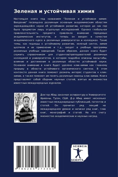 Nastoqschaq kniga pod nazwaniem "Zelenaq i ustojchiwaq himiq: Vwedenie" poswqschena razlichnym osnownym akademicheskim oblastqm zarozhdaüschejsq nauki ob ustojchiwom razwitii, kotoraq do sih por byla predmetom lish' otdel'nyh issledowanij. Odnako global'naq priwlekatel'nost' predmeta priwlekla wnimanie peredowyh akademicheskih institutow, i teper' on wweden w kachestwe akademicheskogo kursa w razlichnyh uniwersitetah i kolledzhah. Takie temy, kak podhody k ustojchiwomu razwitiü, zelenyj sintez, himiq schelchkow i ih primenenie i t.d., whodqt w uchebnye programmy razlichnyh uchebnyh zawedenij. Takim obrazom, dannaq kniga budet sluzhit' sprawochnikom dlq studentow/prepodawatelej razlichnyh kolledzhej i uniwersitetow, w kotorom podrobno opisany masshtaby, wliqnie i dostizheniq w razlichnyh oblastqh ustojchiwoj nauki. Osnownoe wnimanie w knige budet udeleno klik-himii kak glawnomu prorywu w oblasti ustojchiwogo organicheskogo sinteza. V ätom kontexte dannaq kniga pomozhet razzhech' interes studentow k klik-himii, a takzhe pomozhet im ponqt' razlichnye nüansy klik-himii. Kniga predstawlqet soboj sbornik nauchnyh statej, wzqtyh iz mnozhestwa izwestnyh mezhdunarodnyh zhurnalow.