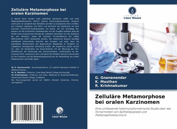 In diesem Buch werden orale epitheliale Dysplasien (OED) und orale Plattenepithelkarzinome (OSCC) anhand histomorphometrischer Analysen untersucht. Es vergleicht das Verhältnis von Kern zu Zytoplasma (N:C) in Fällen von schwerer Dysplasie und OSCC und korreliert die Ergebnisse mit dem invasiven Tumorfront-Grading-System von Bryne. Auf der Grundlage der Analyse von 80 archivierten Gewebeproben mit der ProgRes-Software zeigt die Studie einen progressiven Anstieg der nukleären Anomalien von der Dysplasie bis zum Karzinom, wobei die höchsten N:C-Verhältnisse bei mäßig differenzierten OSCC beobachtet werden. Die statistische Analyse bestätigt signifikante Unterschiede zwischen den Gruppen und zeigt, dass die quantitative Morphometrie die diagnostische Objektivität im Vergleich zur subjektiven histologischen Einstufung erhöht. Die Ergebnisse deuten darauf hin, dass die Kombination der Bryne-Kriterien mit der Messung des N:C-Verhältnisses die Vorhersage des Tumorverhaltens, insbesonderean der invasiven Front, verbessern kann und damit den Klinikern bessere Instrumente für die Prognose und die Behandlungsplanung bei der Behandlung von oralen Präkanzerosen und Krebs bietet.
