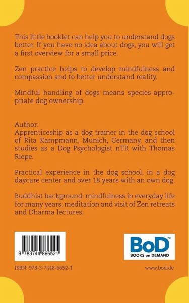 This little booklet can help you to understand dogs better. If you have no idea about dogs, you will get a first overview for a small price.Zen practice helps to develop mindfulness and compassion and to better understand reality.Mindful handling of dogs means species-appropriate dog ownership.