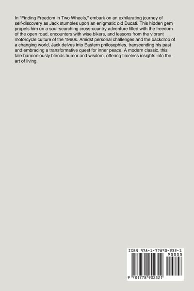 In Finding Freedom in Two Wheels, embark on an exhilarating journey of self-discovery as Jack stumbles upon an enigmatic old Ducati. This hidden gem propels him on a soul-searching cross-country adventure filled with the freedom of the open road, encounters with wise bikers, and lessons from the vibrant motorcycle culture of the 1960s. Amidst personal challenges and the backdrop of a changing world, Jack delves into Eastern philosophies, transcending his past and embracing a transformative quest for inner peace. A modern classic, this tale harmoniously blends humor and wisdom, offering timeless insights into the art of living.