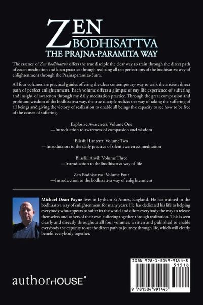 The essence of Zen Bodhisattva offers the true disciple the clear way to train through the direct path of zazen meditation and koan practice through realizing all ten perfections of the bodhisattva way of enlightenment through the Prajnaparamita-Sutra. All four volumes are practical guides offering the clear contemporary way to walk the ancient direct path of perfect enlightenment. Each volume offers a glimpse of my life experience of suffering and insight of awareness through my daily meditation practice. Through the great compassion and profound wisdom of the bodhisattva way, the true disciple realizes the way of taking the suffering of all beings and giving the victory of realization to enable all beings the capacity to see how to be free of the causes of suffering. Explosive Awareness: Volume One -Introduction to awareness of compassion and wisdom Blissful Lantern: Volume Two -Introduction to the daily practice of silent awareness meditation Blissful Anvil: Volume Three -Introduction to the bodhisattva way of life Zen Bodhisattva: Volume Four -Introduction to the bodhisattva way of enlightenment