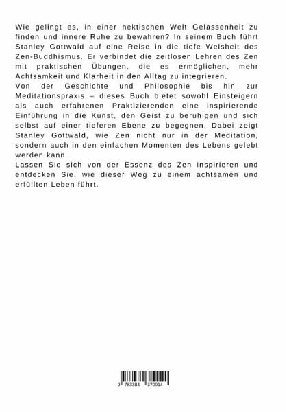 Wie gelingt es, in einer hektischen Welt Gelassenheit zu finden und innere Ruhe zu bewahren? In seinem Buch führt Stanley Gottwald auf eine Reise in die tiefe Weisheit des Zen-Buddhismus. Er verbindet die zeitlosen Lehren des Zen mit praktischen Übungen, die es ermöglichen, mehr Achtsamkeit und Klarheit in den Alltag zu integrieren.Von der Geschichte und Philosophie bis hin zur Meditationspraxis - dieses Buch bietet sowohl Einsteigern als auch erfahrenen Praktizierenden eine inspirierende Einführung in die Kunst, den Geist zu beruhigen und sich selbst auf einer tieferen Ebene zu begegnen. Dabei zeigt Stanley Gottwald, wie Zen nicht nur in der Meditation, sondern auch in den einfachen Momenten des Lebens gelebt werden kann.Lassen Sie sich von der Essenz des Zen inspirieren und entdecken Sie, wie dieser Weg zu einem achtsamen und erfüllten Leben führt.