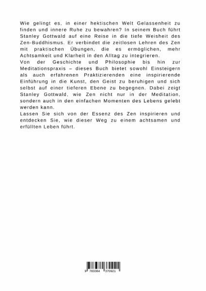 Wie gelingt es, in einer hektischen Welt Gelassenheit zu finden und innere Ruhe zu bewahren? In seinem Buch führt Stanley Gottwald auf eine Reise in die tiefe Weisheit des Zen-Buddhismus. Er verbindet die zeitlosen Lehren des Zen mit praktischen Übungen, die es ermöglichen, mehr Achtsamkeit und Klarheit in den Alltag zu integrieren.Von der Geschichte und Philosophie bis hin zur Meditationspraxis - dieses Buch bietet sowohl Einsteigern als auch erfahrenen Praktizierenden eine inspirierende Einführung in die Kunst, den Geist zu beruhigen und sich selbst auf einer tieferen Ebene zu begegnen. Dabei zeigt Stanley Gottwald, wie Zen nicht nur in der Meditation, sondern auch in den einfachen Momenten des Lebens gelebt werden kann.Lassen Sie sich von der Essenz des Zen inspirieren und entdecken Sie, wie dieser Weg zu einem achtsamen und erfüllten Leben führt.