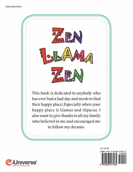 This book is dedicated to anybody who has ever had a bad day and needs to find their happy place; Especially when your happy place is Llamas and Alpacas. I also want to give thanks to all my family who believed in me and encouraged me to follow my dreams.