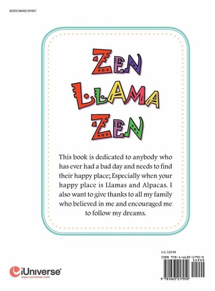 This book is dedicated to anybody who has ever had a bad day and needs to find their happy place; Especially when your happy place is Llamas and Alpacas. I also want to give thanks to all my family who believed in me and encouraged me to follow my dreams.