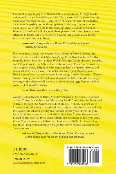 In his latest collection, George Guida seeks our universal connection through popular culture. His poems follow Michael Jackson onto the dance floor, figure Bob Dylan as a poem, chase Alec Baldwin's living ghost, pray with Aretha Franklin, marry Jay-Z and Beyoncé, cross over with Shakira, smile with the Beach Boys, dream of Barry Manilow, digitize ABBA, fight lost wars with Pearl Jam, fight obscurity with Sly Stone, act with Sarah Bernhardt, die with Vic Morrow, fade away with Kurt Cobain, recover with Amy Winehouse, persist with José Feliciano, and find new life in the Beatles. Blending art, philosophy, metaphor, and humor, Guida's poems transform each song, each performance, each artist into a platform for our ultimate reality.