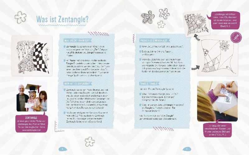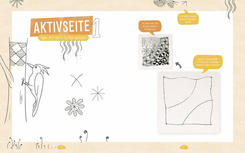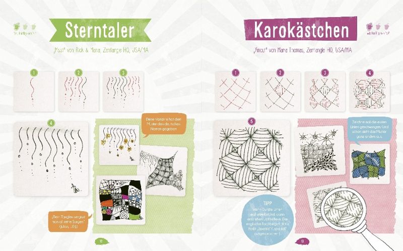 Die Tiere des Waldes sind im Zentangle-Fieber! Zusammen mit Eichhörnchen, Bär und Igel lernen sowohl ruhige Mäuschen als auch unruhige Geister 25 neue Muster kennen und erhalten zahlreiche Tipps, wie sie diese kreativ umsetzen können.Die Zentangle®-Methode ist eine entspannende Art, mit sich wiederholenden Mustern Bilder zu gestalten. Durch den kontemplativen Vorgang ist es vor allem für Kinder eine wunderbare Methode, sich zu beschäftigen. Zentangle® regt die Kreativität an und verhilft schnell zu Erfolgserlebnissen. Es ist perfekt für Kinder ab 8 Jahren, die spannende Zeichenabenteuer im Zentangle®-Wald erleben wollen und bietet mit zwei Schablonen extraviel Spaß an Zentangle®.