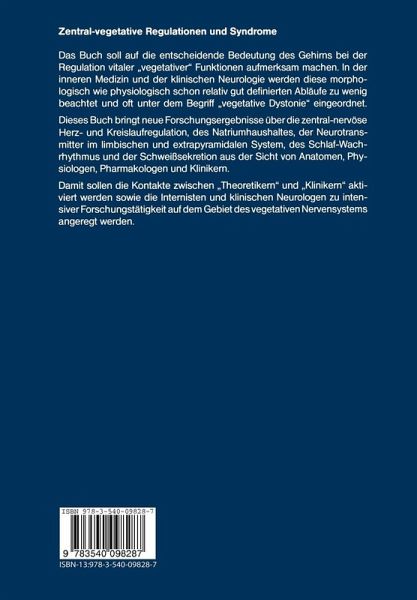 Das sogenannte vegetative Nervensystem als anatomischer Begriff...- Prosencephale und rhombomesencephale Zentren des autonomen Nervensystems.- Die Pressorezeptoren des Karotissinus.- Morphologische Befunde zur vegetativen Innervation der Hirngefäße.- Organisation eines gemeinsamen Hirnstammsystems für Kreislauf, Atmung und allgemeine Aktivitätssteuerung.- Beitrag zur zentralen Kreislaufregulation - Experimente zur funktionellen Bedeutung des Mandelkerns.- Das Gehirn Renin-Angiotensin System: Ein Modell für die Synthese von Peptiden im Gehirn.- Über die Beteiligung peripherer und zentraler noradrenerger Neurone an der Genese des Doca-Salz-Hochdrucks.- Zur extrarenalen Regulation des Natriumbestandes.- Autonome Dysfunktion bei zentralneurologischer Krankheit.- Synchronisierte Tiefschlafphasen im Koma als Ausdruck einer residualen Schlafzyklik.- Über die zentral-nervöse Steuerung der Schweißsekretion.- Schlußbetrachung.