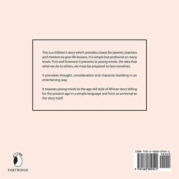 This is a children's story which provides a basis for parents, teachers and mentors to give life lessons. It is simple but profound on many levels. First and foremost it presents to young minds, the idea that what we do to others, we must be prepared to face ourselves. It provokes thought, consideration and character building in an entertaining way. It exposes young minds to the age old style of African story telling for the present age in a simple language and form as universal as the story itself.
