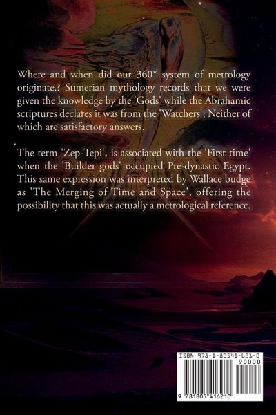Where and when did our 360° system of metrology originate? Sumerian mythology records that we were given the knowledge by the 'Gods', while the Abrahamic scriptures declare it came from the 'Watchers', neither of which are entirely satisfactory answers. The term Zep-Tepi is associated with the 'First Time' when the 'Builder Gods' occupied pre-dynastic Egypt and this same expression was interpreted by Wallace Budge as 'The Merging of Time and Space', offering the possibility that it actually referred to a working system of metrology. This fascinating book combines ancient Egyptian and Sumerian mythologies with the Abrahamic scriptures creating a single narrative which offers a new perspective on the original motivation and function of the Giza pyramids. Follow the author on a journey which reveals the presence of an ancient system of metrology tracing from the first Axis Mundi at Giza/Heliopolis back to the megalithic culture at Göbekli Tepe - later home to the Biblical patriarchs. In addition to revealing an apparent use of longitude and latitude long before the Greeks this book explores other topics such as the idea that Nimrod, Narmer and Etana were records of the same person, the timing of the Biblical patriarchs to the Sothic and Zodiac cycles, the relationship between Giza and Göbekli Tepe and the enduring question of an Egyptian influence at Baalbek.