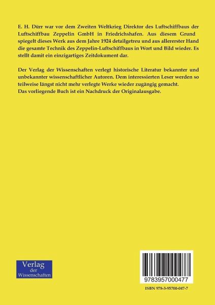 E. H. Dürr war vor dem Zweiten Weltkrieg Direktor des Luftschiffbaus der Luftschiffbau Zeppelin GmbH in Friedrichshafen. Aus diesem Grund spiegelt dieses Werk aus dem Jahre 1924 detailgetreu und aus allererster Hand die gesamte Technik des Zeppelin-Luftschiffbaus in Wort und Bild wieder. Es stellt damit ein einzigartiges Zeitdokument dar.