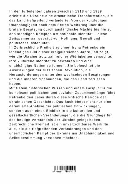 In den turbulenten Jahren zwischen 1918 und 1939 erlebte die Ukraine eine dramatische Transformation, die das Land tiefgreifend veränderte. Von der kurzlebigen Unabhängigkeit nach dem Ersten Weltkrieg über die brutale Besatzung durch ausländische Mächte bis hin zu den ständigen Kämpfen um nationale Identität - diese Zeitspanne war geprägt von Hoffnung, Gewalt und politischer Instabilität.In Zerbrechliche Freiheit zeichnet Iryna Petrenko ein lebendiges Bild dieser ereignisreichen Jahre und zeigt, wie die Ukraine trotz zahlreicher Widrigkeiten versuchte, ihre kulturelle Identität zu bewahren und eine unabhängige Nation zu formen. Sie beleuchtet die Auswirkungen der russischen Revolution, die Herausforderungen unter den wechselnden Besatzungen und die inneren Spannungen, die das Land zerrissen haben.Mit tiefem historischen Wissen und einem Gespür für die komplexen politischen und sozialen Zusammenhänge führt Petrenko den Leser durch diese kritische Periode der ukrainischen Geschichte. Das Buch bietet nicht nur eine detaillierte Analyse der politischen Entwicklungen, sondern auch einen Einblick in die kulturellen und gesellschaftlichen Veränderungen, die die Grundlage für das heutige Verständnis der Ukraine gelegt haben.Zerbrechliche Freiheit ist ein unverzichtbares Werk für alle, die die tiefgreifenden Veränderungen und den unermüdlichen Kampf der Ukraine um Unabhängigkeit und Selbstbestimmung verstehen möchten.