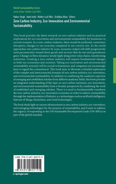 The book sheds light on various advancements in zero carbon industry, eco-innovation, and emerging technologies for the purpose of sustainability, and it aims to address the urgency of responding to the UN Sustainable Development Goals (UN-SDGs) as part of the global mandate.