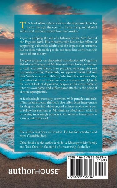 This book offers a sincere look at the Supported Housing sector through the eyes of a former drug and alcohol addict, and prisoner, turned front line worker: Zayne is gripping the rail of a balcony on the 24th floor of the Pegasus hotel. His thoughts take him to his efforts of supporting vulnerable adults and the impact that Austerity has on these vulnerable people, and front line workers, in this sector of our society. He gives a hands on theoretical introduction of Cognitive Behavioural Therapy and Motivational Interviewing techniques to staff and puts theory into practice, working with real caseloads such as; Zachariah, an apparent racist and one time 'angriest person in Britain,' who finds his understanding of confrontation an excuse for excess violence, and TJ, with the vacant look of depression; despair in his eyes, unable to utter his own name, and suffers panic attacks to the point of chronic agoraphobia. A fascinatingly true story, entwined with parables and tales of his turbulent past; this book also offers Brief Intervention for drug and alcohol addiction, and an introduction, with easy to follow instructions to Mindfulness Meditation which is becoming increasingly popular in the western hemisphere as a stress reduction tool.
