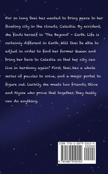For so long Skai has wanted to bring peace to her floating city in the clouds, Celestia. By accident, she finds herself in 'The Beyond'- Earth. Life is certainly different in Earth. Will Skai be able to adjust in order to find her former Queen and bring her back to Celestia so that her city can live in harmony again ? First, Skai has a whole series of puzzles to solve, and a magic portal to figure out. Luckily she meets two friends, Olive and Alyssa who prove that together they really can do anything.
