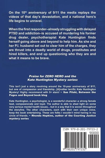 On the 10th anniversary of 9/11 the media replays the videos of that day's devastation, and a national hero's life begins to unravel. When the first responder, already struggling with delayed PTSD and addiction, is accused of murdering his former drug dealer, psychotherapist Kate Huntington finds herself going above and beyond to help him. As she and her P.I. husband set out to clear him of the charges, they are thrust into a deadly world of drugs, prostitutes and hired killers, and end up questioning who they are and what it means to be brave. (This book is part of a series but is also designed to be read and enjoyed as a stand-alone story.)…mehr