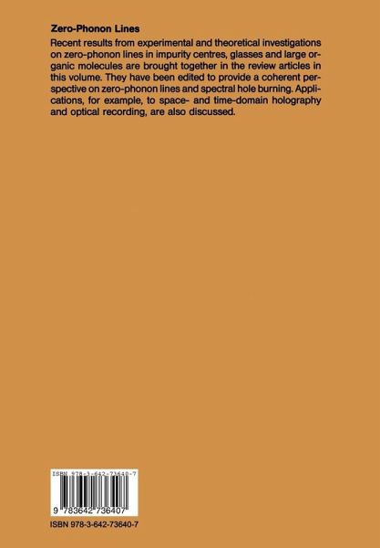 Lasers are playing a more and more dominant role in modern optical spec troscopy, offering an increased potential for high resolution and, thus, for more detailed spectroscopic information on dynamic and structural param eters. This book on Zero-Phonon Lines and Spectral Hole Burning in Spec troscopy and Photochemistry gives a concise and very useful survey of some of the pioneering and current work on solid state spectroscopy of various groups in the USSR. It focusses on the optical Mossbauer analogue, the "zero-phonon line" , and "hole burning" spectroscopy, a method which increases the resolu tion well beyond the zero-phonon linewidth. In this conte. . 'Ct, the present work is complementary to Persistent Spectral Hole-Burning: Science and Applica tions (ed. by W. E. Moerner, Springer, Berlin, Heidelberg 1988), which deals in more detail with the various aspects of laser spectroscopy with ultrahigh spectral resolution. Zero-phonon lines and an understanding of the various phonon coupling mechanisms which are treated in this book are a prerequi site for applying and understanding techniques of ultrahigh resolution such as hole-burning or optical echoes. Bayreuth, March 1988 D. Haarer Preface The investigation of zero-phonon lines (ZPLs) is one of the foremost and most informative fields of present-day condensed-matter spectroscopy. Along with its definite function in physical cognition and investigation methods, the spectroscopy of ZPLs is also gaining purely practical applications. This is due to the fact that ZPLs are extra-sensitive quantum-mechanical detectors.